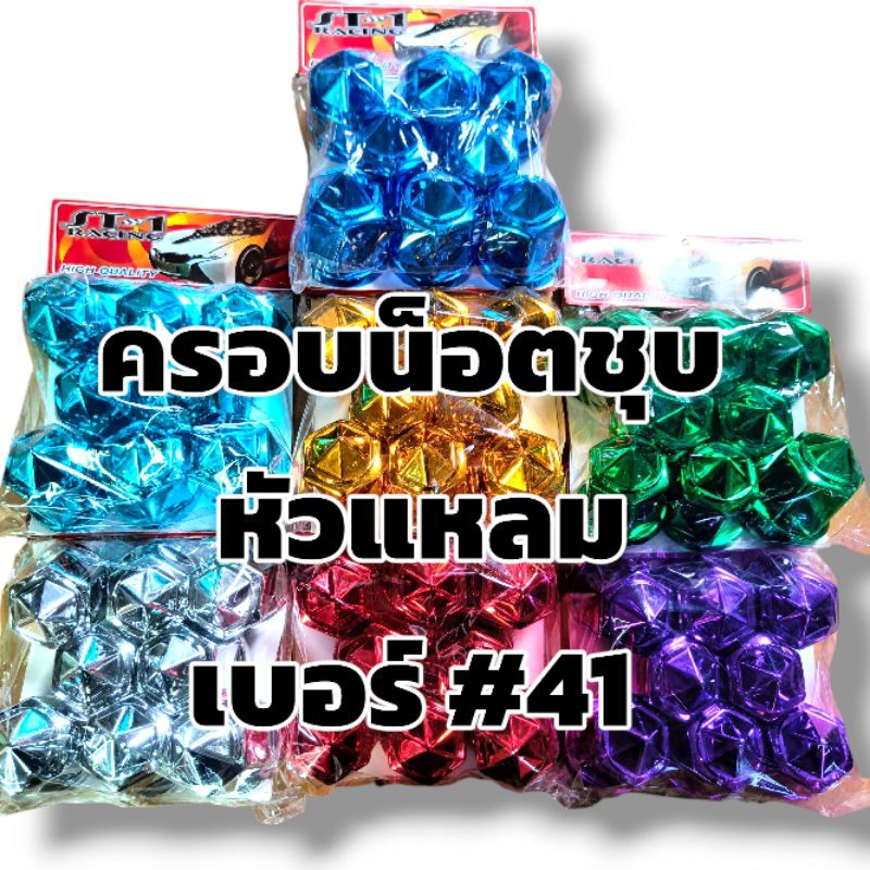 ครอบน็อตชุบ หัวแหลม เบอร์ #41 ครอบน็อตล้อรถบรรทุก 6ล้อ 10ล้อ 1ซองบรรจุ8ชิ้น