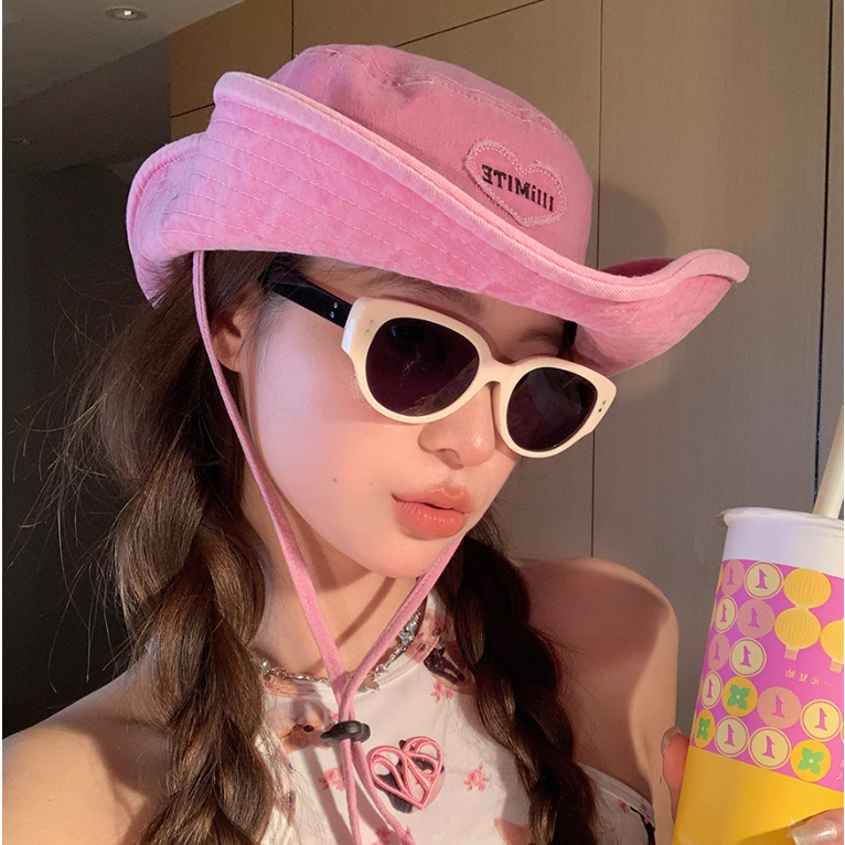 Home Unlabelled หมวกบักเก็ตกันแดด ลายหัวใจน่ารัก สีชมพู สไตล์ญี่ปุ่น ตะวันตก คาวบอย เหมาะกับเดินป่า กลางแจ้ง สําหรับผู้หญิง