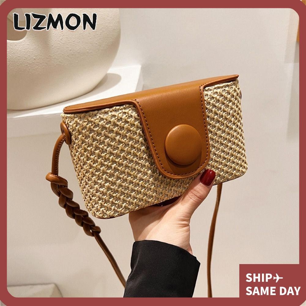 Lizmon กระเป๋าสะพาย, Handmade Braid Bohemian Messenger Bag, แฟชั่นหวาย Crossbody Bag Summer Beach