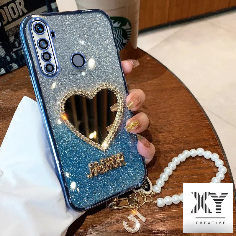Home Unlabelled เคส Realme 5 5i 5s 6i c3 5 Pro หรูหราเครื่องสําอางแต่งหน้า Love กระจกเงา เปลือกอ่อน พร้อมสร้อยข้อมือ เชือกเส้นเล็ก เคสโทรศัพท์สําหรับเด็กผู้หญิง เคสโทรศัพท์ Realme 5 5i 5s 6i c3 5 Pro